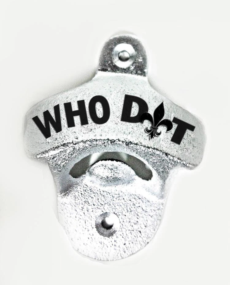 The Who Dat Saints Cast iron Wall Mount Beer Bottle Opener is the perfect gift for your Saints fan. Add the Who Dat Saints Cast iron Wall Mount Beer Bottle Opener to your man cave for game day.