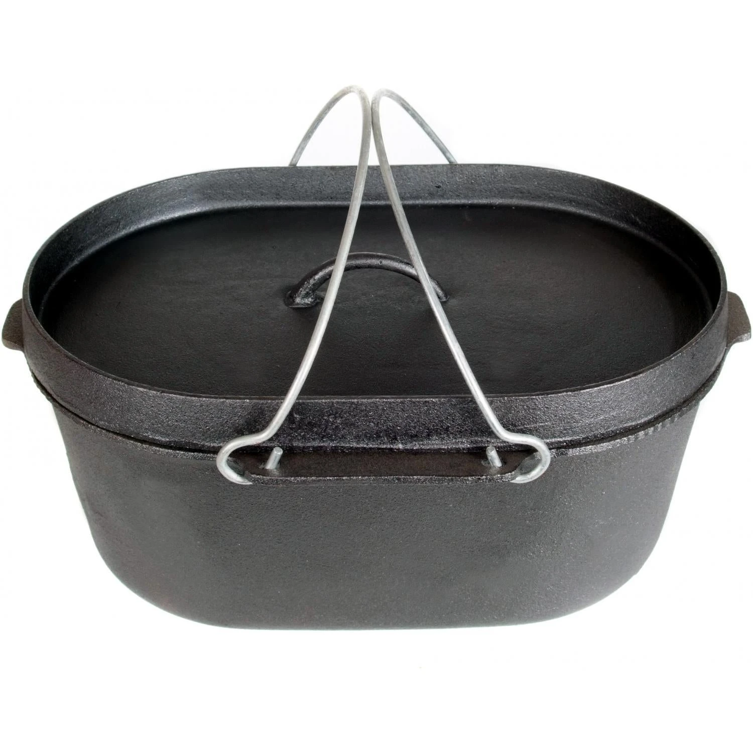 This Cajun Classic casserole pot is extremely versatile and can be used as a pot or a grill. The Cajun Classic pot itself is oval in shape and the interior measures 14 inches long x 9. 5 inches wide x 5. 5 inches high. The lid does double duty as a cover and grill when you flip it over. This pot features a Seasoned Finish. Pre-seasoned to perfection and ready for use. Cast iron cookware makes for superior heat retention and even heating of foods. Heavy-duty and durable, designed to last for years. Hand wash with stiff brush and hot water.
