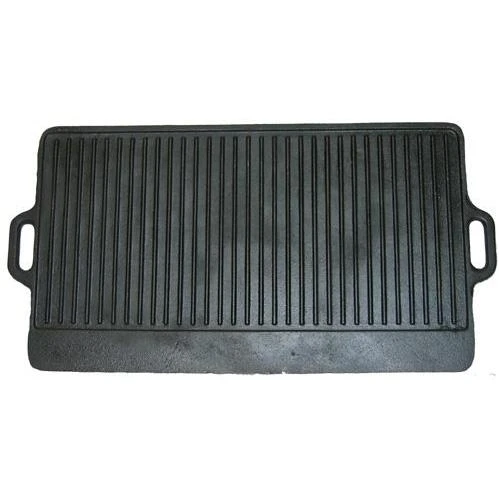This Cajun Classic griddle is made of a heavy duty cast iron and features an extra large size and dual cooking surfaces. One side of the cast iron griddle has a flat surface with a grease trough, while the other is channeled to drain grease away from your food. Measurements not including handles are 14 x 25 inches, with handles 14 x 28 inches. This Cajun Classic cast iron cookware is pre-seasoned to perfection and ready for use. Cast iron cookware makes for superior heat retention, even heating of foods and provides nutritional iron intake. Heavy-Duty and durable, designed to last for years. Hand wash with stiff brush and hot water.