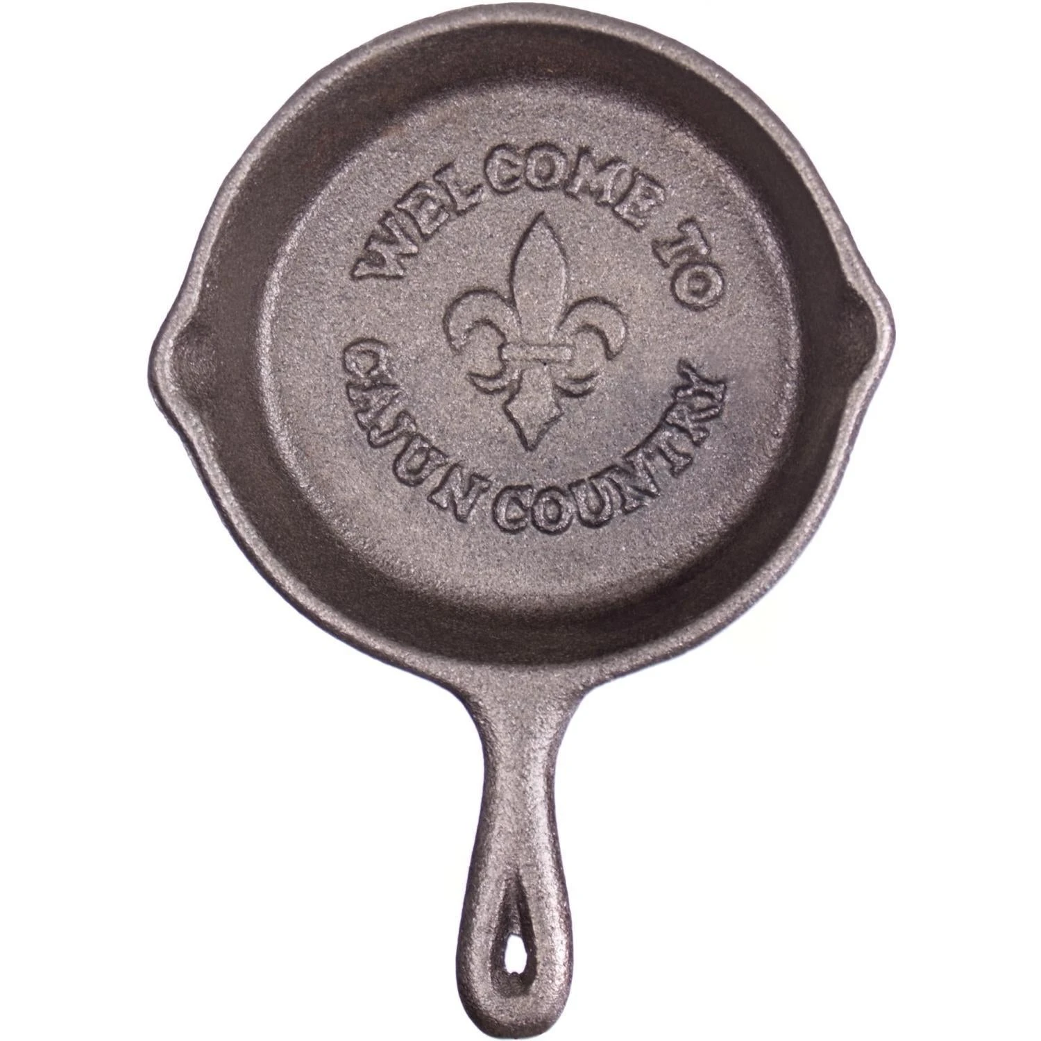 We would use the Cajun Classic Welcome to Cajun Country Fleur De Lis Cast Iron Skillet more for decorative purposes. This cute little Louisiana themed kitchen decor measures 3 inches in diameter. The cast iron skillet measures 6.5 inches long.