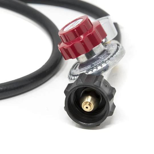 The 0-30 PSI Propane Regulator Kit will reach super high with the right burner. Use the 0-30 PSI Propane Regulator Kit for high pressure propane applications. The hose measures 4 foot and the fitting on the end of the hose is a 3/8 inch flare swivel fitting. Use the 30 PSI propane regulator kit with our KAB4, KAB6 and BG14 burners.