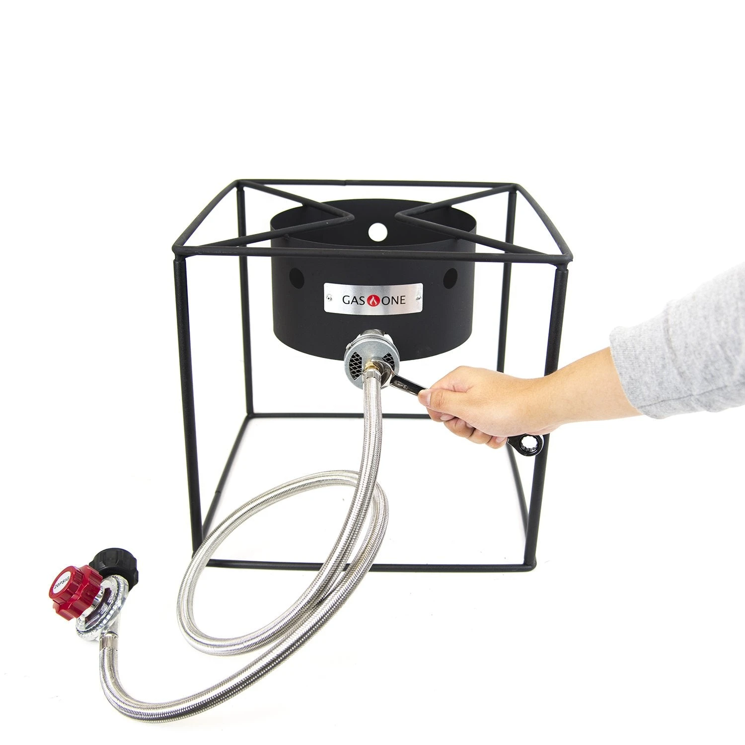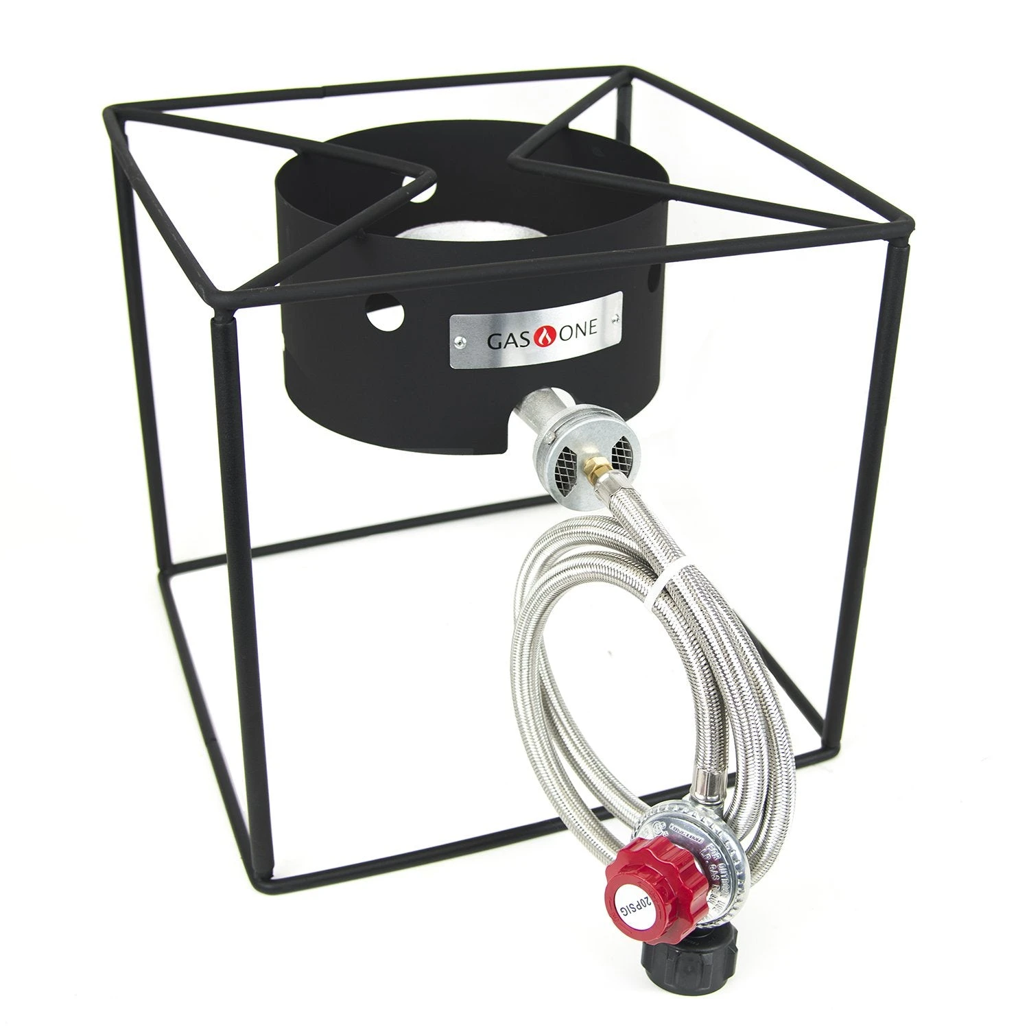 The Compact High Pressure Propane Burner is a truly portable, compact high pressure propane burner. In the time it takes for you to turn on the propane tank, the Compact High Pressure Propane Burner can be put together, taken down, and prepped for a fully cooked meal. The Compact High Pressure Propane Burner is constructed with a sturdy cast iron burner head, powerful enough to emit 65,000 BTU. The Compact High Pressure Propane Burner has all the benefits of a portable camp stove with the power of a gas grill. The Compact High Pressure Propane Burner is outfitted with a high pressure regulator and steel braided hose. THIS propane burner is an extremely versatile propane range that can be taken virtually anywhere.