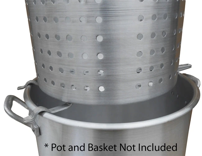 30″ aluminum strainer rack fits across top of up to a 160 Qt. King Kooker boiling pot for easy draining of basket.